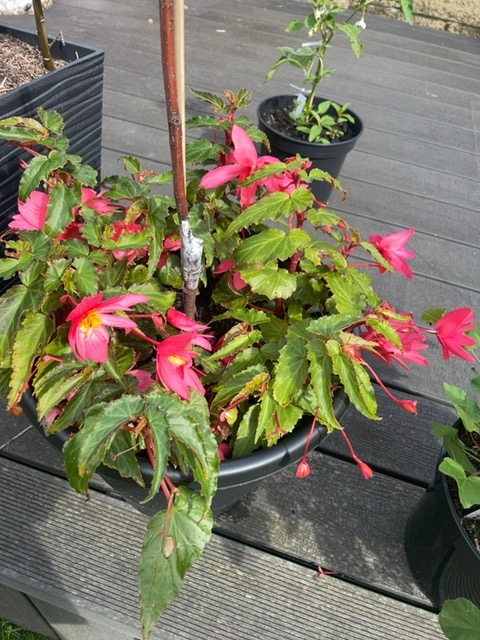 The plant in the photo appears to be a begonia, a pink flowering begonia commonly grown in containers and hanging baskets. The leaves are green with serrated edges, and they have an asymmetrical shape that is characteristic of begonias. The plant bears clusters of bright pink flowers with yellow centers that hang along the stems, creating a cascading display. The stems are slender and the plant grows densely, which suggests it is well suited to pots and hanging planters. While there are many begonia cultivars, the overall look points to a fibrous rooted or wax begonia type that is frequently used for summer container plantings. New growth sometimes takes on a bronze or reddish tint, a common trait in many begonia varieties. In warm regions this kind of begonia behaves as a perennial, whereas in cooler climates it is treated as a tender annual. The plant benefits from regular pruning and pinching to maintain fullness and to prevent legginess, especially when grown in a protected pot or hanging basket where light might be uneven. Given its ability to bloom heavily through the growing season, it is a popular choice for color in decks, patios, and entryways. The flowers are the key ornamental feature, but the foliage adds contrast and texture with its glossy surface and serrated margins. The plant also tolerates periods of light shade, though it will flower best with bright, indirect light. This identification is based on the visible traits in the photo, and there are many begonia cultivars with similar forms, so exact cultivar name may vary. Care and culture overview Light and placement: Begonias in containers prefer bright, indirect light. Placing the pot where it receives morning sun or filtered light is ideal, while avoiding intense direct sun in the hottest part of the day. In strong sun or hot climates, leaves may scorch, and overly deep shade can reduce flowering. If the plant becomes leggy or your flowers slow, it is a sign that light is inadequate or that the plant has grown too large for its pot. A bright balcony or terrace with morning sun and afternoon shade works well. Indoors, place the pot near a bright window with filtered light. Rotating the container every week or two helps keep growth evenly distributed and encourages fuller branching. Temperature and humidity: Begonias prefer moderate temperatures. A comfortable range is roughly 60 to 75 F (15 to 24 C). They do not tolerate frost and should be protected from cold drafts. Humidity is beneficial; if indoor air is dry or if you notice leaf edges browning, increase humidity by grouping plants, placing the pot on a humidity tray, or using a room humidifier. While they tolerate average indoor humidity, higher humidity during the growing season can promote more vigorous growth and abundant blooms. Watering and soil drainage: The most important cultural trait for begonia is even moisture without waterlogging. Water thoroughly when the top inch of soil dries to the touch, then allow excess water to drain completely. In hot weather, the plant may need more frequent watering, especially if it is in a sunny spot or a small pot. Do not leave the plant sitting in a saucer of water, as this can lead to root rot. A well draining potting mix is essential. A peat based or coco coir mix with perlite or pumice provides good drainage and air contact for roots. Soil and repotting: Use a light, well draining potting mix. Begonias prefer slightly acidic to neutral soil (pH around 5.5 to 6.5). If the plant becomes pot bound or new growth slows, repot in a container only slightly larger than the current one. Fresh potting mix each spring, combined with occasional feeding, helps maintain vigor. Avoid heavy garden soil that compacts easily, as begonias like air in the root zone. Fertilization: Furnishing begonias with a balanced, water soluble fertilizer promotes flowering and foliage quality. Apply a balanced fertilizer (for example an NPK around 10-10-10 or 14-14-14) every two to three weeks during the growing season. In very hot weather with abundant flowering, you can reduce frequency to every four weeks. Do not overfertilize with high nitrogen, which can encourage leaf growth at the expense of blooms and may lead to legginess. In winter, when growth slows, reduce feeding or stop altogether. Pruning, training, and propagation: For a bushier, fuller plant, pinch back the tips every few weeks, removing the growing tip to encourage lateral branching. Deadhead spent flowers to encourage additional blooming and prevent the plant from directing energy to spent blooms. If the plant becomes leggy, trimming back some of the elongated stems can rejuvenate the appearance and improve air circulation, reducing disease risk. Begonias can be propagated from stem cuttings or by layering. Take 4–6 inch cuttings with a couple of nodes, remove lower leaves, insert into moist potting mix, and keep warm and humid until roots form. This makes a reliable way to multiply plants for pots or for sharing with friends. Pests and diseases: Common issues include aphids, whiteflies, mealybugs, and red spider mites. Regular inspection and prompt treatment with insecticidal soap or horticultural oil can keep infestations under control. Powdery mildew and leaf spots can occur in humid, stagnant air or when air movement is limited. Ensure good air circulation around the plant, avoid overhead watering on the leaves, and apply a appropriate fungicide if needed. Root rot is a risk when soil remains soggy; use well draining soil and a pot with drainage holes, and adjust watering accordingly. Seasonal care and overwintering: In many temperate regions, these begonia types are grown as annuals. If you live in a warmer climate, they can be treated as perennials. In winter, indoors, keep them in a bright location with consistent temperatures and reduced watering. Some growers with tuberous begonias may need a dry resting period in winter, but fibrous or wax begonias generally do not req